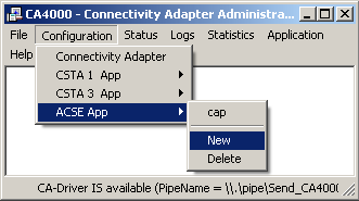 | In der CA4000 Administration fügen Sie unter Konfiguration einen neue ACSE Applikation hinzu. |