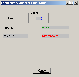 Sie können den Status des CSTA Links zwischen dem ECSTA und dem CA4000 in dem Connectivity Adapter Link Status Fenster beobachten. Sobald der ECSTA mit dem CA4000 verbunden ist wechselt der ecsta Link auf Active. Hinweis: Überprüfen Sie ob der Dienst 'Connectivity Adapter' gestartet ist und starten Sie diesen eventuell manuell. Der ECSTA verbindet sich mit dem CA4000 während dem Auslesen der Leitungen und sobald eine Tapi Leitung geöffnet wird. |