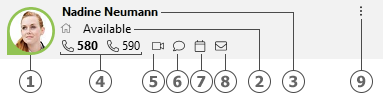 - Aktuell angemeldeter Benutzer mit Status, Notiz und Erreichbarkeit