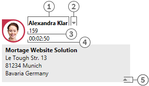 The currently selected contact in the call window offers several numbers. Via the icon select you can choose another of the contact's phone numbers. The call is not yet initiated. The icon call starts the call. |